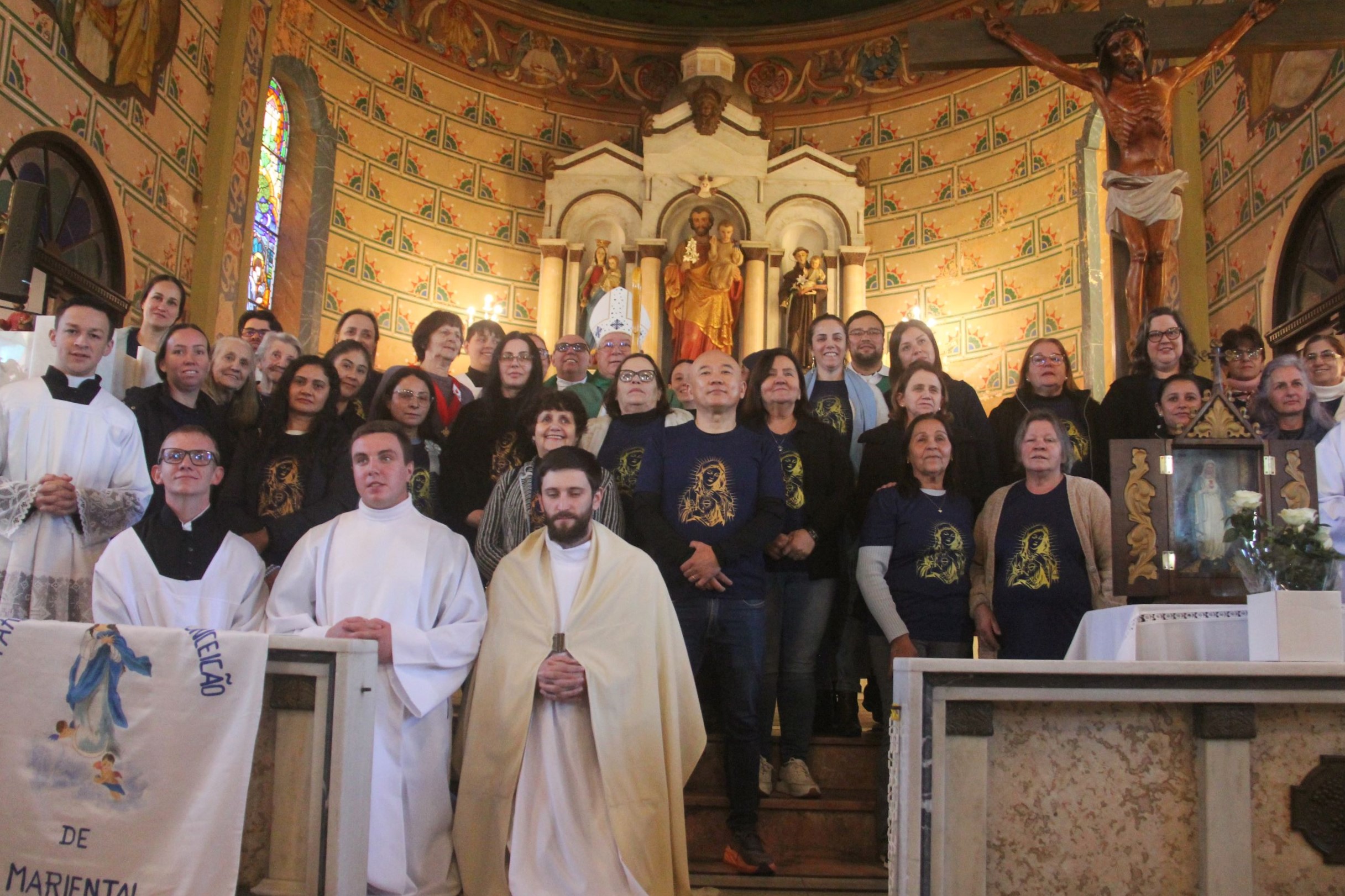 Na tarde do último domingo, 6 de julho, a Catedral São José recebeu um momento especial de fé e comunhão: a Missa Diocesana do Movimento das Capelinhas. A celebração foi presidida por Dom Celso Antônio Marchiori, bispo diocesano e concelebrada pelo Pe. João Alex Schlickmann, assessor diocesano do Movimento das Capelinhas e demais padres presentes.