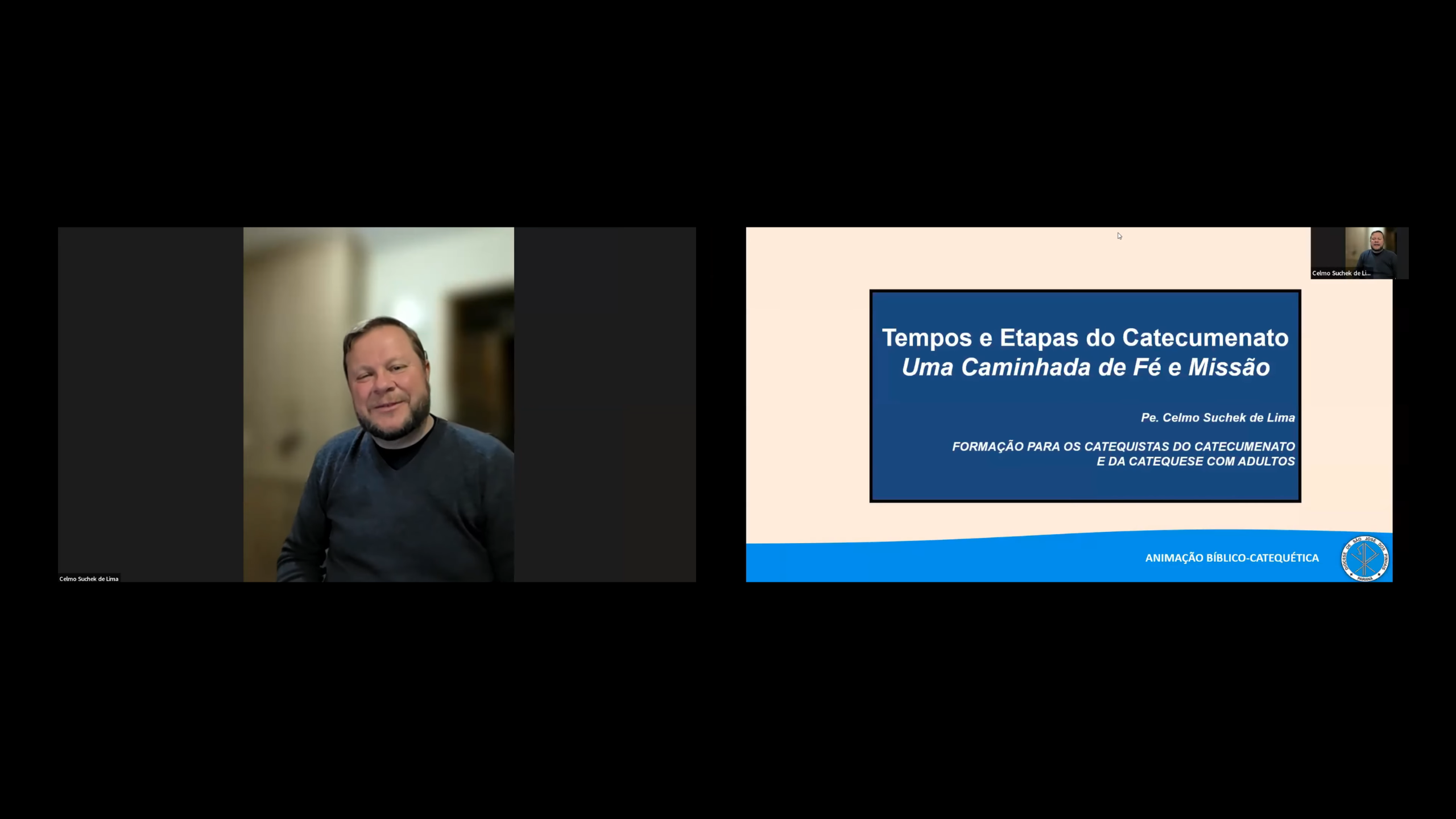 O assessor da noite, Pe. Celmo Suchek de Lima, Coordenador da Ação Evangelizadora, conduziu o encontro apresentando uma visão geral do itinerário catecumenal, suas etapas e a mística que sustenta todo o processo. O momento foi enriquecido com reflexões sobre a importância da iniciação à vida cristã como caminho de conversão e amadurecimento na fé, em sintonia com as orientações da Igreja.