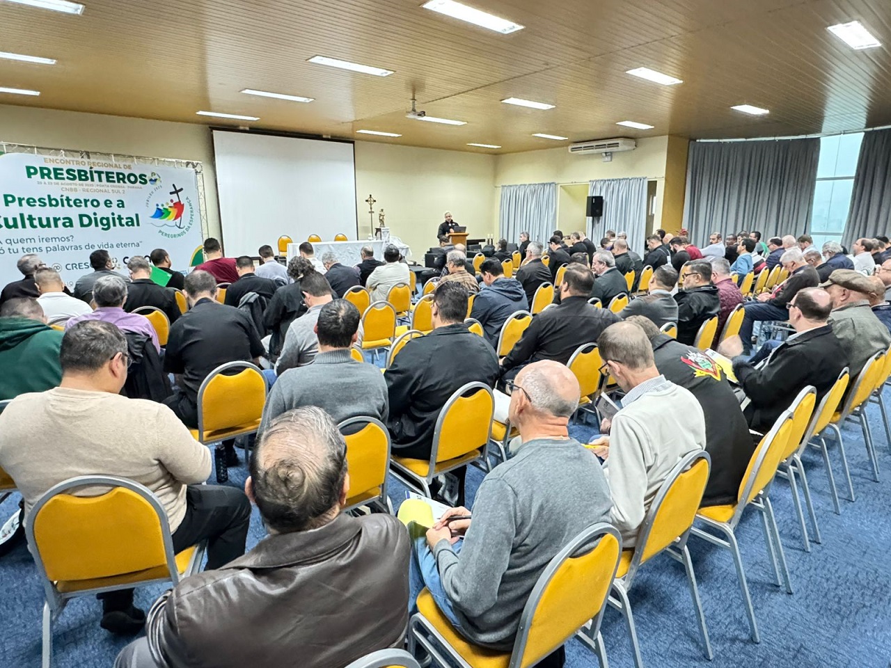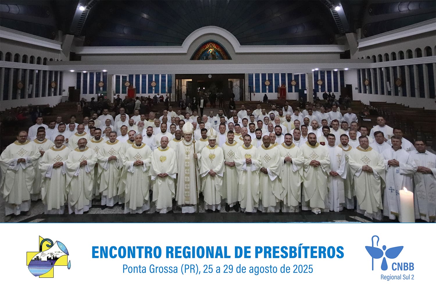 Com o tema “O Presbítero e a Cultura Digital”, o Encontro Regional de Presbíteros do Paraná foi realizado em Ponta Grossa (PR), de 25 a 29 de agosto, reunindo 112 padres das 18 arqui/dioceses do Estado. A assessoria ficou a cargo do assessor de imprensa da Conferência Nacional dos Bispos do Brasil (CNBB), padre Arnaldo Rodrigues. O encontro contou ainda com a presença integral do bispo de União da Vitória e referencial para os presbíteros no Paraná, dom Walter Jorge Pinto; além da participação, em alguns momentos, do bispo de Ponta Grossa, dom Bruno Elizeu Versari; e do arcebispo de Londrina e presidente da CNBB Sul 2, dom Geremias Steinmetz.