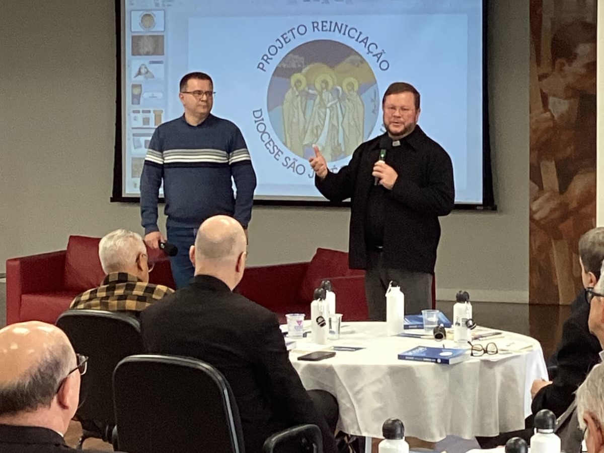Na abertura da apresentação, o Pe. Celmo Suchek de Lima, fez uma introdução ao processo do projeto, recordando a história da Diocese de São José dos Pinhais desde sua criação. Ele destacou que, com o primeiro bispo, Dom Ladislau Biernaski, iniciou-se uma caminhada marcada pela participação; com o segundo bispo, Dom Francisco Carlos Bach, consolidou-se a organização dos Conselhos Missionários Pastorais Paroquiais (CMPPs); e agora, sob a condução do terceiro bispo, Dom Celso Antônio Marchiori, a Diocese vive intensamente o processo sinodal. Segundo o presbítero, o Projeto Reiniciação se insere nessa trajetória, trazendo “a força de todo o laicato dentro da Igreja, mostrando a comunhão e a participação que sustentam nossa missão evangelizadora”.