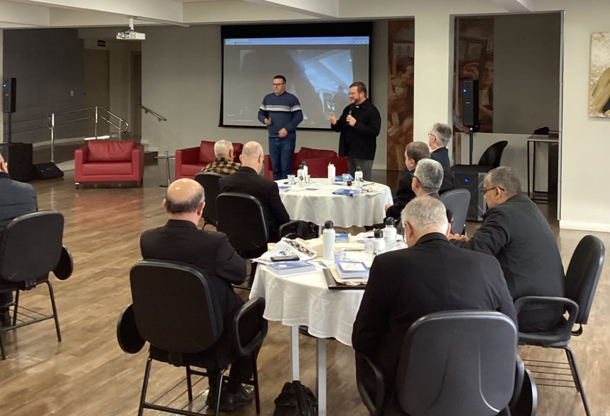 A apresentação integrou o painel de Experiências Pastorais Urbanas e foi conduzida pelo Pe. Celmo Suchek de Lima, Coordenador Diocesano da Ação Evangelizadora, e por Léo Marcelo Plantes Machado, Secretário Executivo da Ação Evangelizadora.