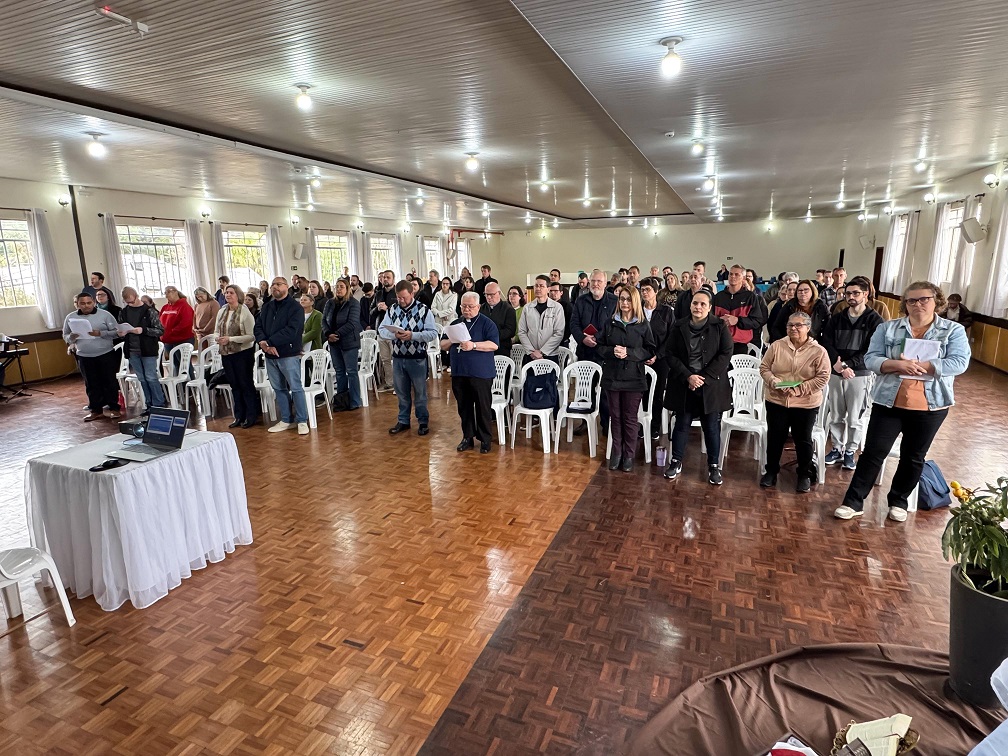 Pe. Celmo também enfatizou a importância dos dois grupos presentes no encontro: os coordenadores e secretários dos CMPPs, que continuarão a reflexão nas paróquias, e os assessores e coordenadores diocesanos de pastorais, movimentos e organismos, que têm a missão de animar e apoiar o envolvimento das paróquias no processo de implementação do Sínodo.