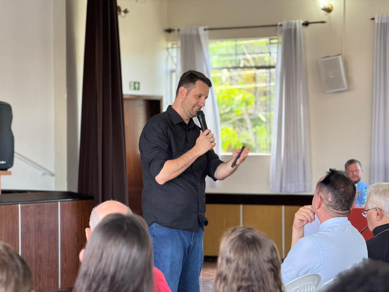 Na sequência, o Pe. Celmo Suchek de Lima apresentou os encaminhamentos práticos da Fase de Implementação do Sínodo, destacando que este momento exige maturidade pastoral e clareza de propósito. Recordou que implementar não significa começar algo totalmente novo, mas dar vida renovada ao que já existe na caminhada da Diocese.
