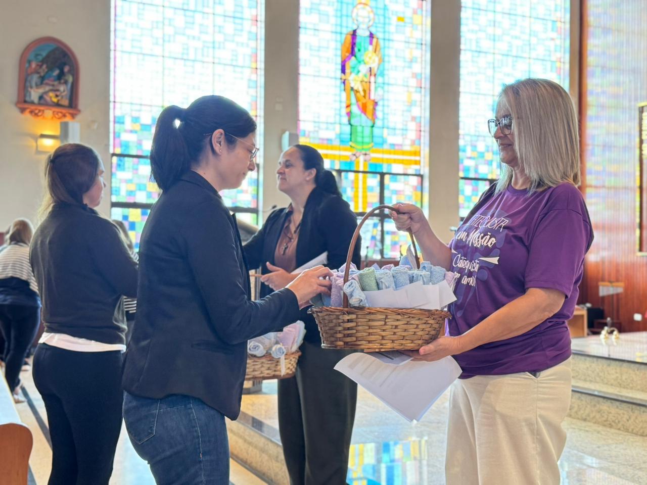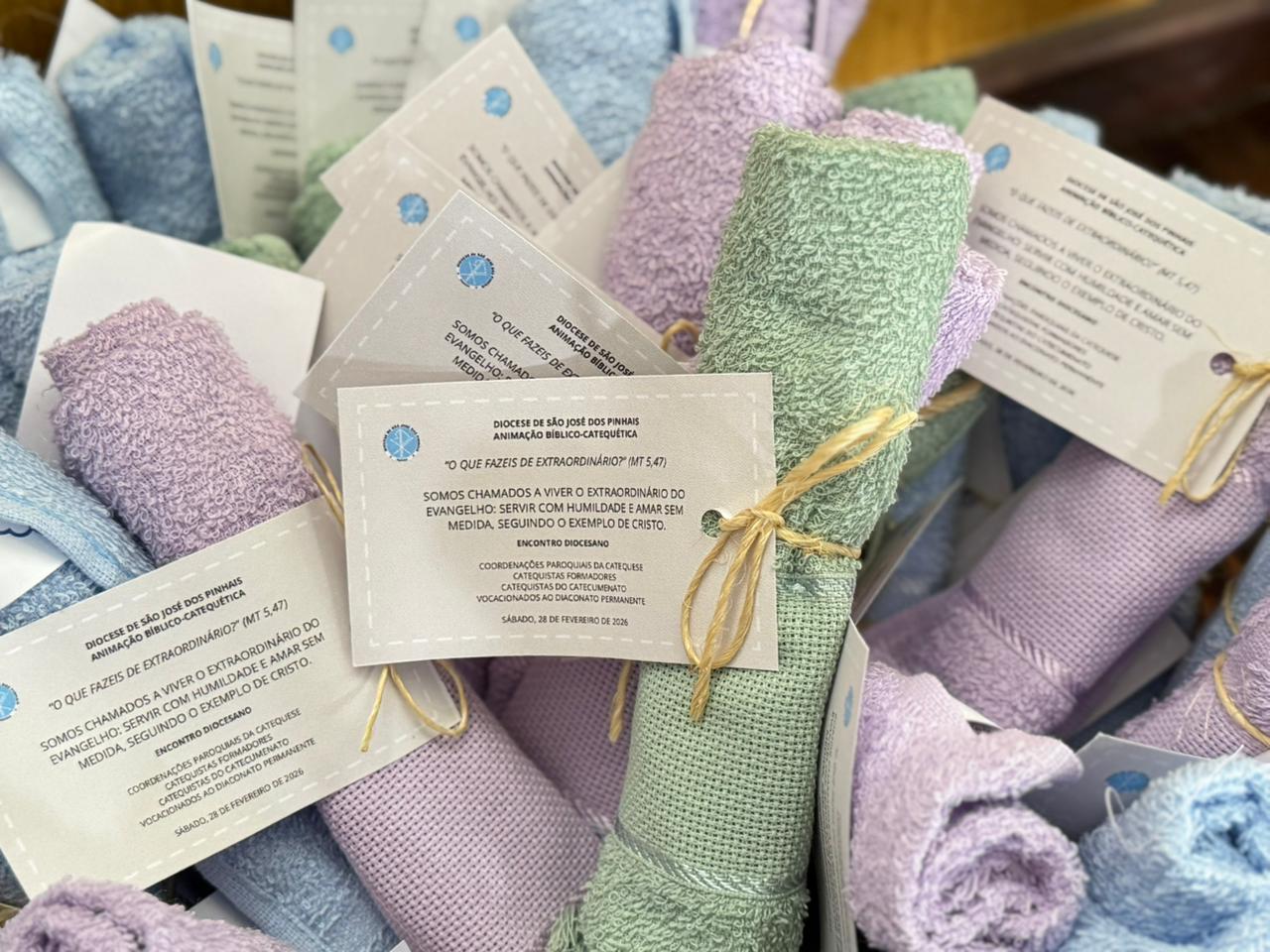 Ao final da celebração, foi realizado o gesto simbólico da entrega da toalha, em memória do lava-pés (Jo 13). O gesto expressou o compromisso assumido por cada catequista: acompanhar os grupos com humildade, espírito de serviço e fidelidade ao caminho da Igreja, lembrando que a verdadeira autoridade nasce do encontro com Cristo.