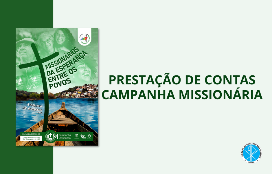 Com gratidão e alegria, comunico à nossa Diocese o resultado da Campanha Missionária, realizada em todas as Paróquias no penúltimo final de semana do mês de outubro, iluminada pelo tema “Missionários da esperança entre os povos” e pelo lema “A esperança não decepciona” (Rm 5,5). A generosidade de tantos fiéis testemunha uma Igreja viva, comprometida e atenta às necessidades dos irmãos e irmãs espalhados pelo mundo.