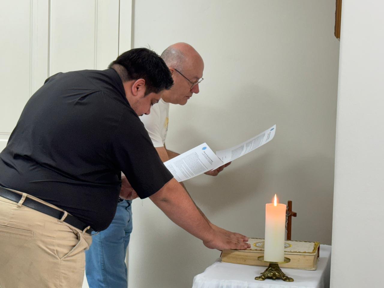 Na manhã desta sexta-feira, 19 de dezembro, nas dependências da Cúria Diocesana, convocados pelo bispo diocesano Dom Celso Antônio Marchiori, o Pe. Adriano José Pires de Lima e o Pe. Sercio Ribeiro Catafesta realizaram, diante do bispo, a Profissão de Fé e o Juramento de Fidelidade, em preparação para a celebração litúrgica de posse.