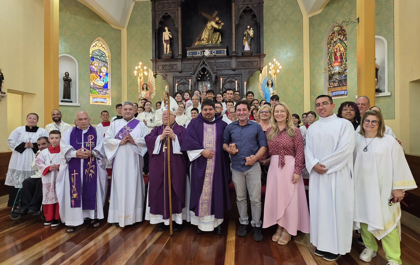Neste domingo, 21 de dezembro, a Paróquia Senhor Bom Jesus dos Passos celebrou a posse do Pe. Adriano José Pires de Lima como novo pároco. Até então administrador paroquial, o sacerdote foi oficialmente empossado durante Missa presidida pelo Bispo Diocesano, Dom Celso Antônio Marchiori.