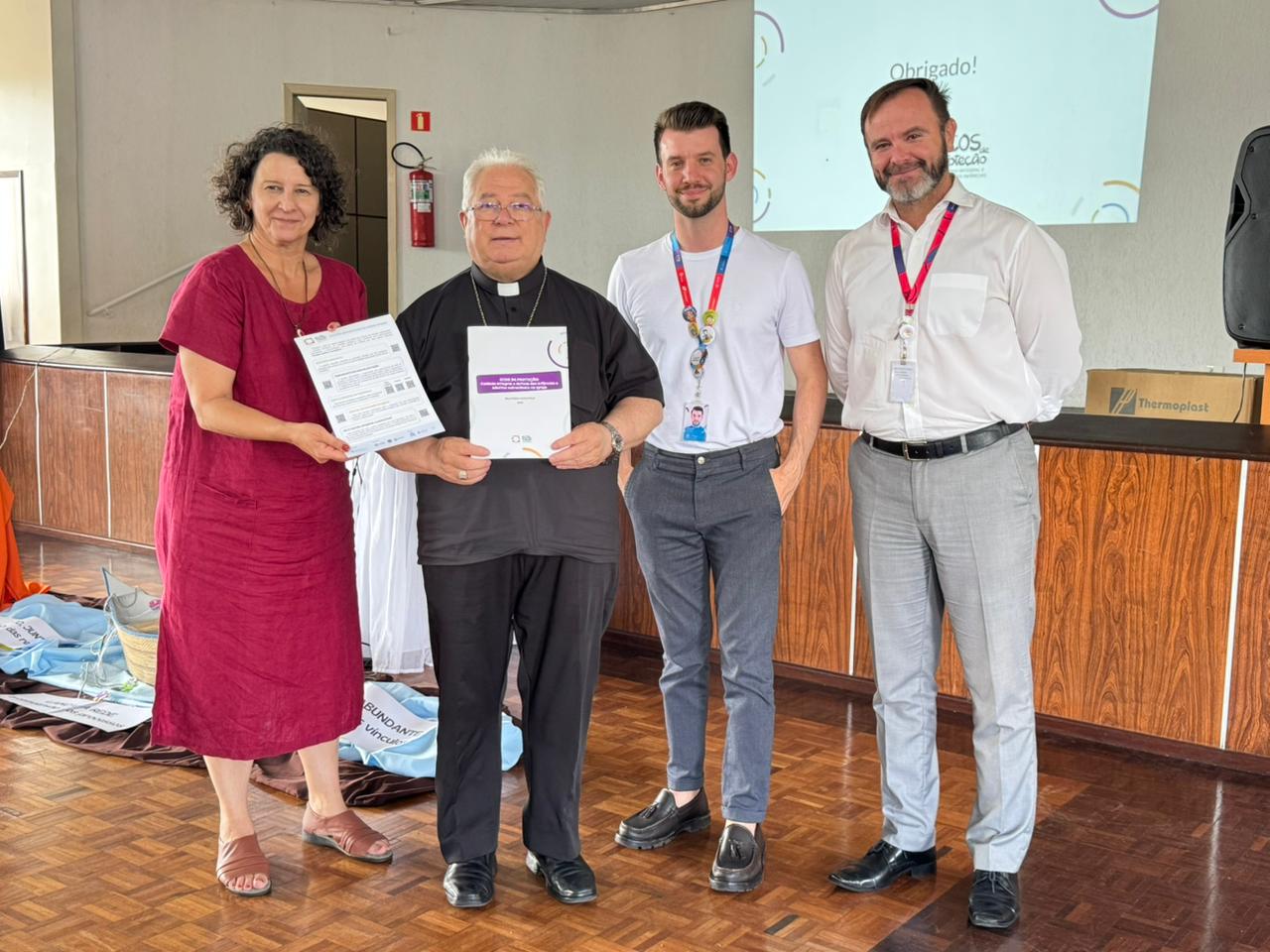 Em seguida, foram apresentados os resultados do Projeto Ecos de Proteção, fruto de parceria com o Centro Marista de Defesa da Infância, PUCPR e outras instituições. A iniciativa expressa o compromisso da Diocese com a cultura do cuidado e com a promoção de ambientes seguros para crianças, adolescentes e pessoas em situação de vulnerabilidade.